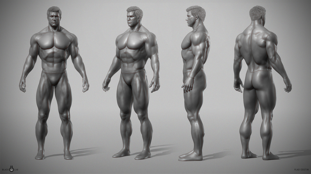 Superhero Male Body Anatomy (size L) - Zbrush hi poly model. The scene has the body itself and cloth accessories. The body has layers, so you can toggle between clear anatomical body and suit details like seams, folds, bare arms and skin pores and wrinkles. Also, there is a pose layer so you can rise his arms
